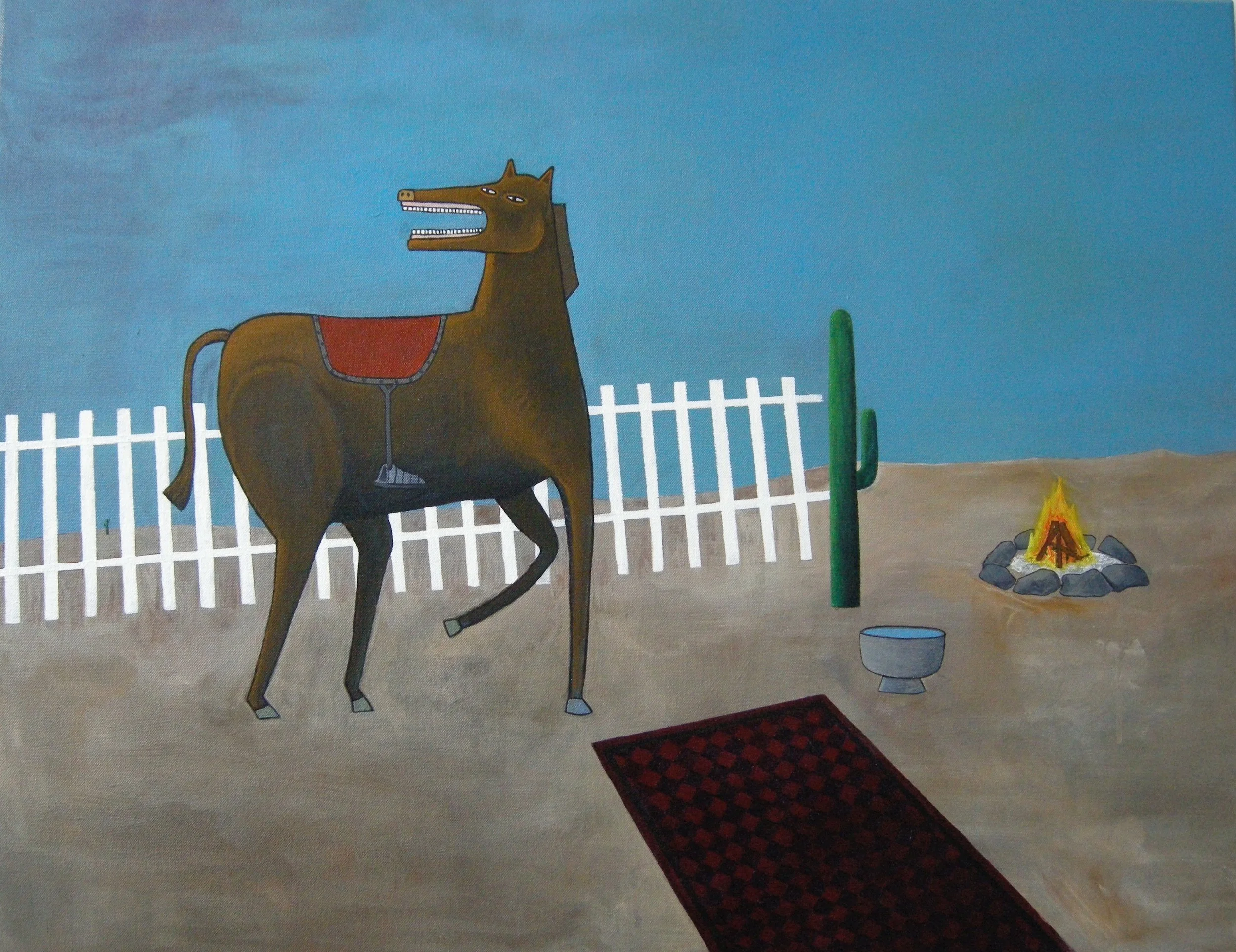 Caballo con alfombra en el desierto